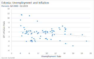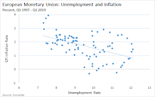 The Phillips curve is always lurking. The message for a central banker is "sure, inflation and unemployment may be low for now, but if we keep monetary policy where it is and permit the unemployment rate to fall further, we will risk higher inflation in the future." I'm not sure if economists who write in this manner are aware that they're making it sound like workers are somehow responsible for inflation. Central banker to workers: "I'm sorry, but we need to keep some of you unemployed...it's the inflation, you see."