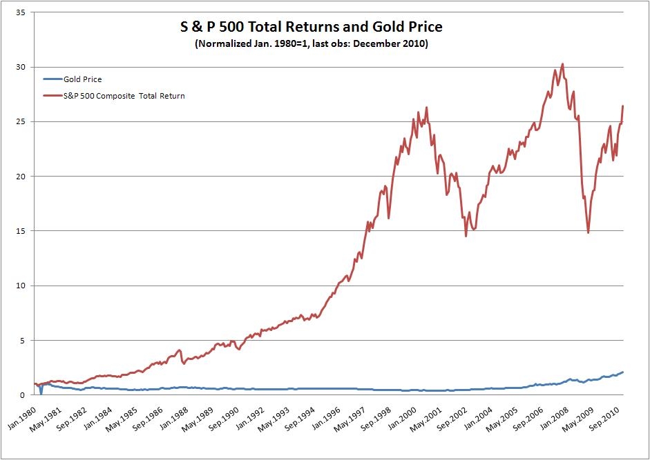 ReplyDeleteIn the 1st graph (since 2000), it appears that the price of goal has grown faster since early 2009 than S&P 500 Total Return index.