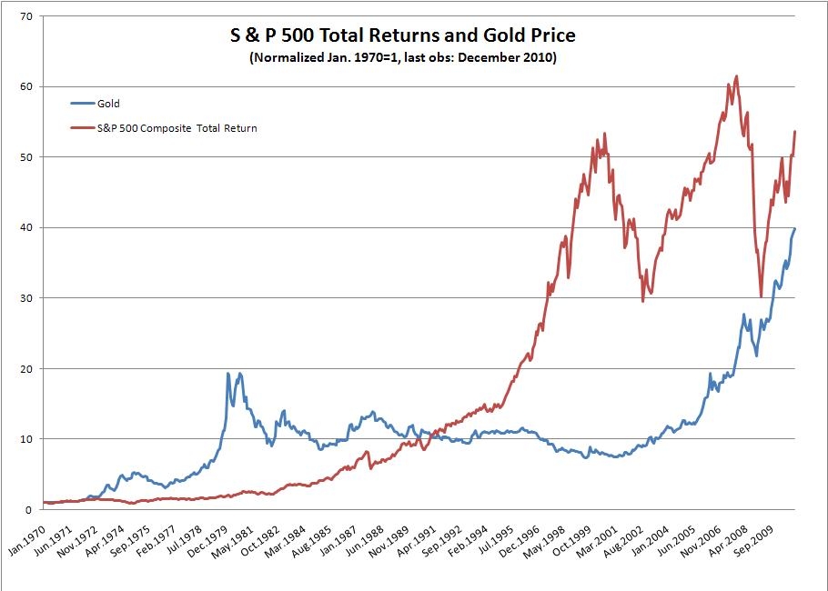 And it's a good lesson to have burned into one's brain. It probably justifies holding some gold in a diversified portfolio of wealth. Can't help but note, however, that even allowing for the disaster that was the 70s, the stock market still outperformed gold in the long-run. Something to keep in mind.
