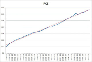 Even though the model delivers a plausible interpretation of some recent macroeconomic developments, a NGDP target is not an obvious solution. But of course, as I said, the model is highly abstract. It is likely missing some features of the real world that NGDP target proponents think are important. If this is the case, then I'd like to hear what they are, and how these elements might be embedded in the model above. If nothing else, it would be a contribution to the debate if we could just get straight what assumptions we are making when stating strong propositions concerning the desirability of this or that policy.